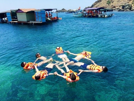 quý hiếm bằng kính lặn truyền thống của ngư dân (hoặc kính bơi). Ngoài ra, Quý khách có thể tham gia các trò chơi như: Motor nước, phao chuối...(chi phí tự túc)