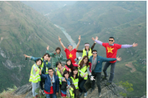 Tiếp tục khởi hành qua Cổng trời, Núi Đôi là du khách đã lên đến Cổng trời Quản Bạ - nơi tiếp giáp giữa trời và đất. Đoàn thỏa sức chiêm ngưỡng phong cảnh thơ mộng vùng đồi núi thị trấn Tam Sơn từ trên cao.